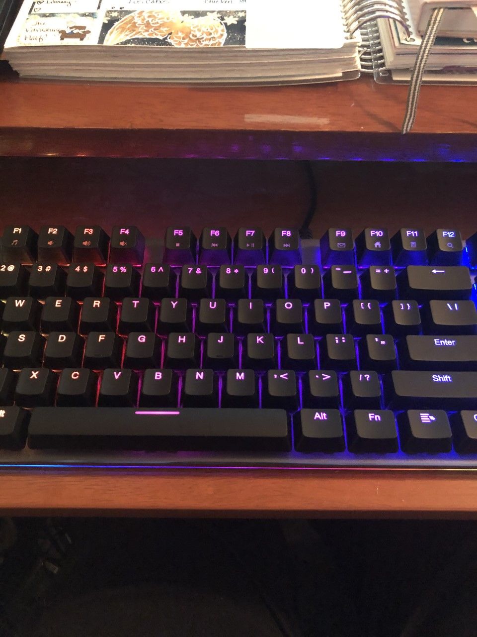 Hey there, howdy hello! I am coming to you from my brand new keyboard! It's super fancy. I wanted a mechanical keyboard because I had heard they were so much better than the regular ones. I liked the click clack sound they make. My hubby went all out and got me one with rainbow lights that shift in waves. It's super fun.