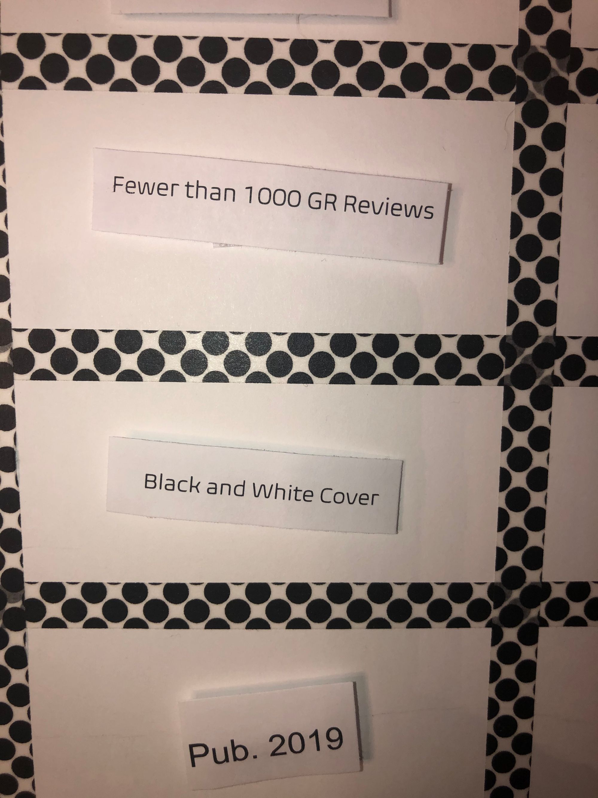 Fewer than 1000 Goodreads Reviews. This is a PopSugar challenge that I have actually already completed. If I get this I might replace it.