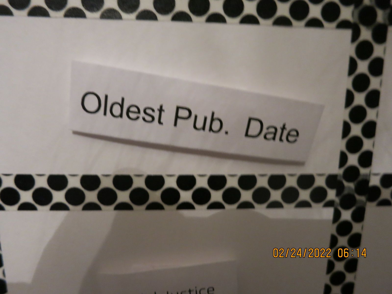 Oldest Publishing Date. So the book on my TBR with the oldest date is was published.
