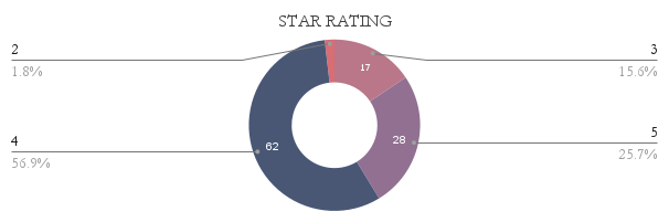 Star rating - Well, I guess I pick good books for myself. Also, I won't rate a book I didn't finish. I don't think that's fair to the book or the author. Most of my books were 4 stars, which seems like a good indication that I'm choosing books I'll like. I had 28 5 star books which seems like a lot, but I will again chalk that up to being a good chooser.